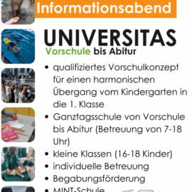 Was macht die UNIVERSITAS aus, welche Schwerpunkte setzt das Schulkonzept und wie läuft der Schulalltag ab – diese und weitere Aspekte stellen wir Ihnen gern am 10.11.2023 um 17 Uhr im Saal des... Weiterlesen